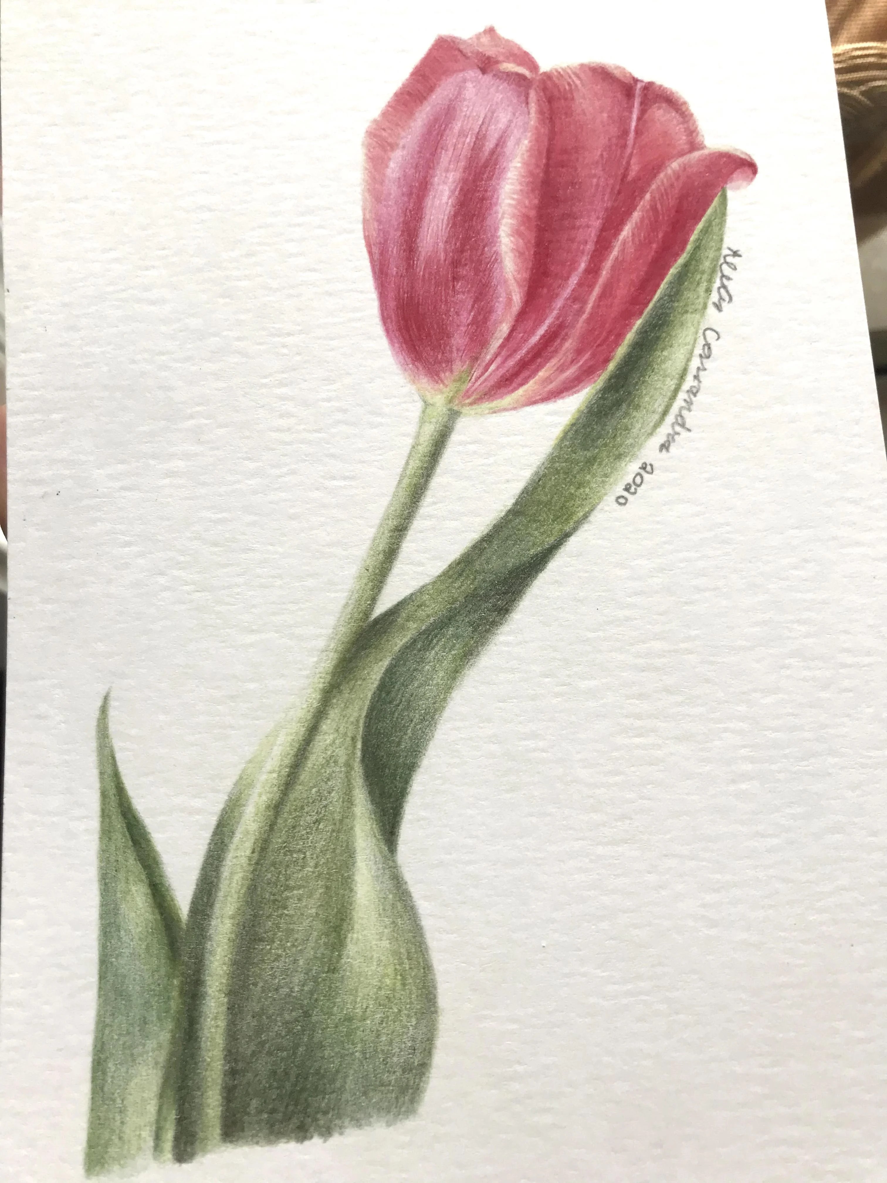 Drawing a Tulip with Colored Pencils - Realistic Colour Pencil Drawing Flowers